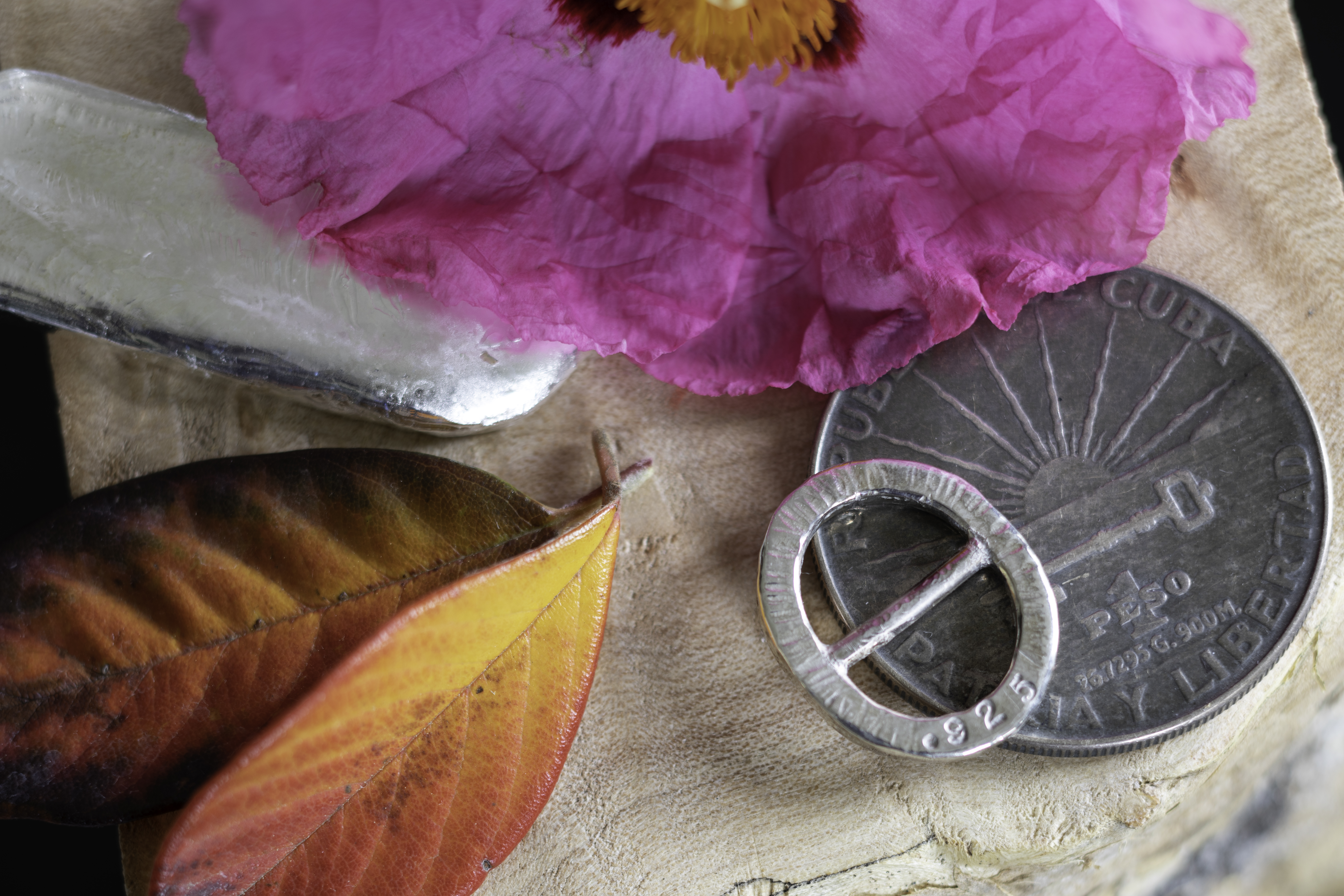 Sterling silver sacrifices a bit of purity for strength and practicality, making it the standard choice for fine jewelry. Composition is 92.5% silver, 7.5% alloy (usually copper) and looks sightly darker than fine silver. Sterling is stronger and more suitable for daily wear, used in rings, bracelets, chains, and most fine jewelry. It tarnishes more readily due to copper content. Coin silver before 1965 (US), typically contains 90% silver and 10% copper, a standard known as .900 fine, which made coins durable enough for circulation.